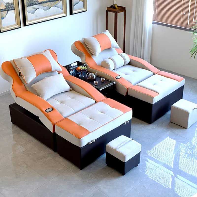Nệm dày, mềm, đàn hồi tốt giúp khách thư giãn tối đa trong suốt quá trình massage. Thiết kế ngả lưng sâu, nâng chân cao, giúp giảm áp lực lên cột sống và lưu thông máu hiệu quả.